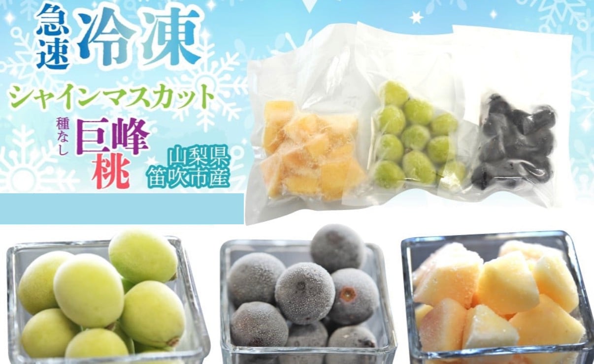 急速冷凍シャインマスカット、冷凍種無し巨峰、冷凍桃 各3袋セット